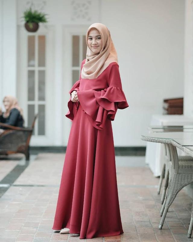 for "Gamis Ala Adik Syahrini / Trik Pakai Hijab Agar Tampak Lebih Tirus Ala Adik Syahrini"